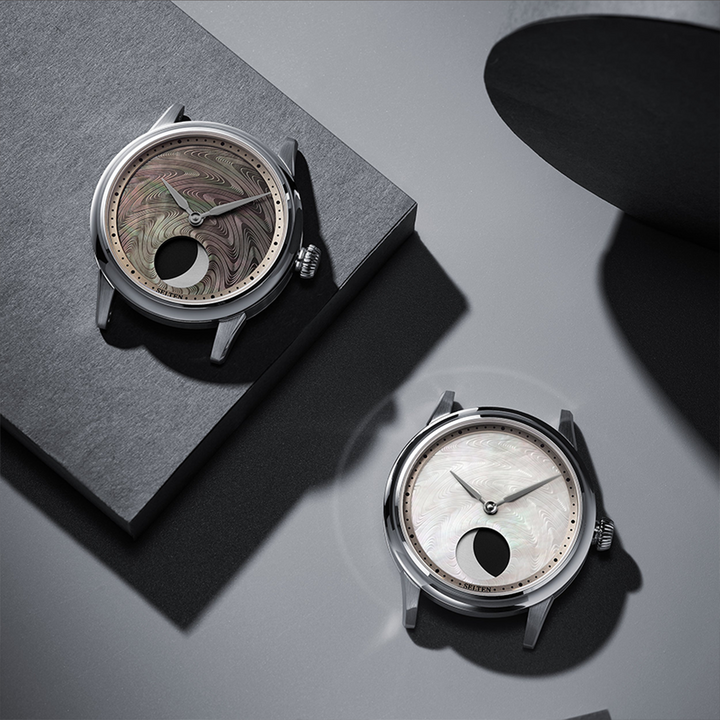 M1 Moonphase offers a minimalist take on the moonphase, celebrating the celestial beauty of the moon in its purest form. This model embodies a refined perspective on the passage of time, elegantly featuring only the hour and minute hands. As a result, the flow of time unfolds in a more understated manner, devoid of the incessant ticking of a second hand.